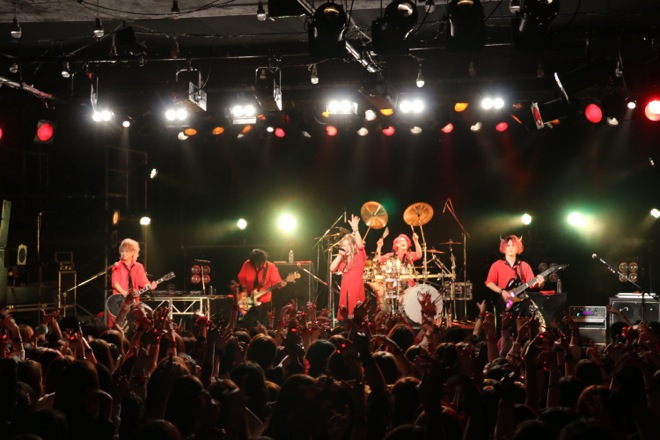 くわえて言うなら、今回のライヴに関してはオーディエンスに対してもドレスコードとして服や小物などを含めた“サムシングレッド”の着用が呼びかけられており、それに該当している場合は、メンバーからのお礼としてトレカがプレゼントされていたという。