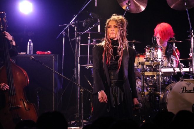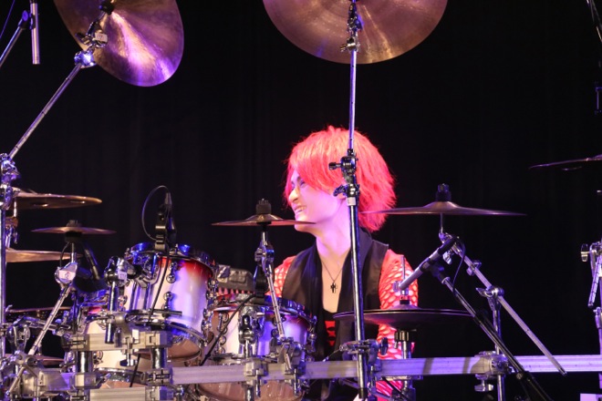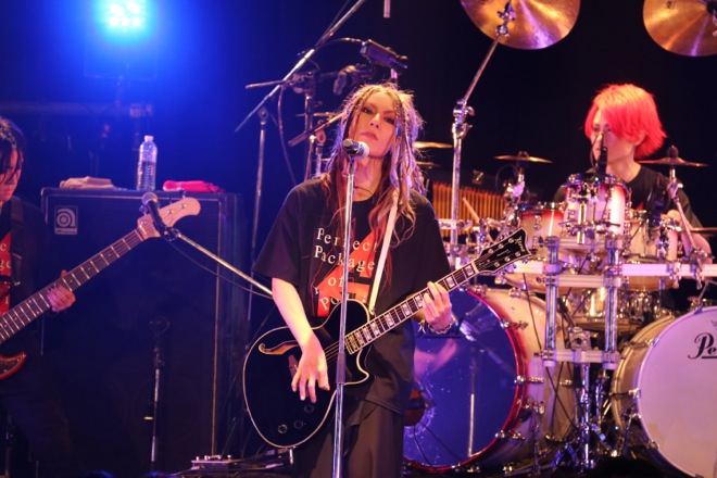そのうえ、この夜の本編中盤にて不朽の歌謡曲チューンである「さそり座の女」が彼らによって華麗にカバーされたシーンも、Anli Pollicinoの持つロックバンドとしての特性がいかんなく発揮されていた場面であったに違いない。言わずもがな、この曲は御大・美川憲一氏の鉄板持ち曲に他ならないが、いわゆる歌謡曲の中でも相当に怨念めいたディープさを擁したこの世界を、ただのカラオケ的なコピーなどで終わらせることなく、Anli Pollicino流の解釈で艶っぽくも過激にプレイしてみせるその手腕は、やはりグラマラスなV系バンドとしての研鑽を詰んできた彼らならではの技とセンスが活かされたところ、だと断言出来る。