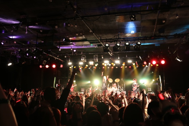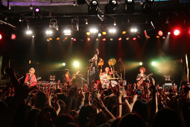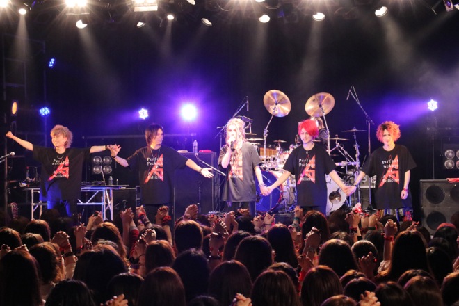 なお、ここから始まった5曲目の「Psycho Brain」はヘヴィで刺々しい曲調が前面に押し出されたもので、近年のポップで洗練された楽曲が多く見受けられている傾向からすると、Anli Pollicinoが実は今もずっと持ち続けてきているのであろうV系バンドとしての“三つ子の魂”を、力強く感じるくだりでもあった。逆に言えば、この鋭く尖った基盤が揺るがぬものとして根底にあるからこそ、彼らはどれだけ華やかでキャッチーな楽曲をやろうとも、決して浮ついたチャラさを感じさせることがないのだと思われる。と同時に、この手のアグレッシヴな楽曲が始まるやいなや、場内にいるファンの方もこぞって髪の毛を振り乱しながらヘッドバンギングを始めるあたりが、実に“わかっていて”素晴らしい。Anli Pollicinoの愛されぶりが、こうした一幕からもよく伝わってくる。