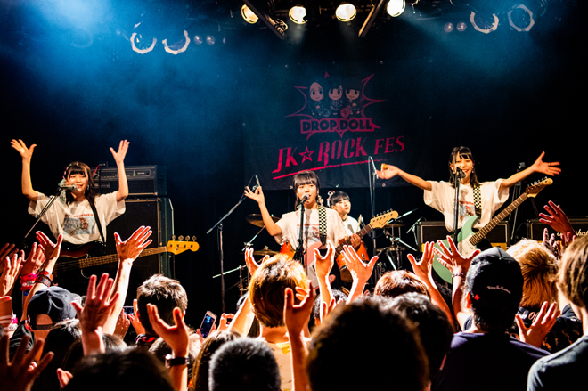 現役女子高生ロックバンド・DROP DOLLが6月3日、東京・渋谷 RUIDO K2て初の自主イベント<JK☆ROCK FES VOL.1>を行なった。