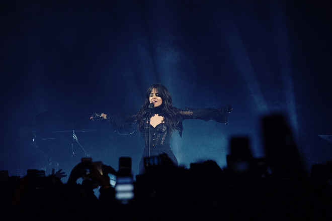 熱狂的な歓声に迎えられて始まったショウのオープニング曲は、全米アルバム・チャートで初登場1位を飾ったデビュー・アルバム『Camila』からのセカンド・シングル「Never Be the Same」。ステージ上のカラフルな大スクリーンとバックバンドの前に登場したカミラは、セクシーな黒のロングドレス姿で、今回のツアーのタイトルとなったバラード曲をパワフルな美声で熱唱した。その後は、男女6人のダンサー達を従えたアップテンポの曲が続く。「She Loves Control」はパフォーマンスで圧倒するだけでなく、観客に叫ばせ、場内の一体感を一気に高めた。「Inside Out」は曲の最後にダンス・ブレイクに繋がり、カミラはダンサー達とキレのある踊りを披露。フィフス・ハーモニーのメンバー時代から長年ダンスもこなしてきたカミラの動きは、その鮮やかで艶のある歌声と同様に素晴らしい。