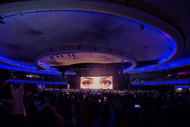 4月14日(土)、15日(日)と2夜連続でロサンゼルスにあるHollywood Palladium公演を完売にしたカミラ・カベロ。初日土曜の夜、開演時間前の会場の周囲は長蛇の列で囲まれており、中に入ると、約4,000人収容のスタンディングの場内は10代から20代の男女で満杯になっていた。カミラに憧れるティーンの女子が観客の大半かと予想していたが、男性客も多く、今の彼女の幅広い人気を感じる。