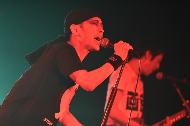 続いて登場したのは、グループ魂の暴動(G)こと宮藤官九郎と石鹸こと三宅弘城にLTD EXHAUST、199x=3のよーかいくん(B)を加えた3ピースバンド画鋲。1970年代パンク、1980年代ハードコア直系のサウンドとともに「更年期」「倦怠期」「パンクたるもの」など11曲を続けざまに披露した。