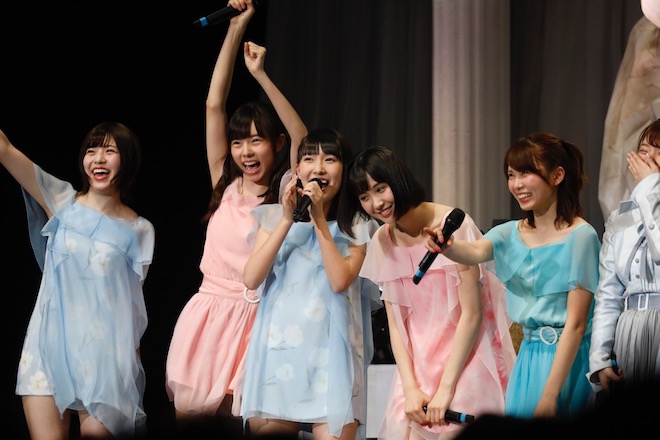 2回目のMCタイムでも天の声が登場し、実写映画『がっこうぐらし!』メインキャストが、恵飛須沢胡桃(くるみ)役は阿部菜々実(LaLuce)、丈槍由紀(ゆき)役は長月翠(LaLuce/シュークリームロケッツ)、若狭悠里(りーさん)役は間島和奏(Someday Somewhere)、直樹美紀(みーくん)役は清原梨央(Someday Somewhere)に決定したことを発表。同作の監督・柴田一成もサプライズ登場し、“正直いい人はいっぱいいた”と述べつつ、“阿部さんはセンターとしての華”“長月さんは無邪気な笑顔”“間島さんは表現力”“清原さんは威嚇力(笑)。”と、選考の決め手を語った。