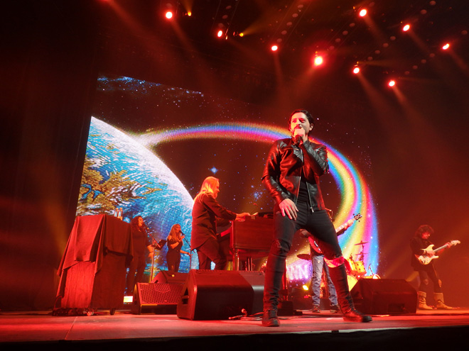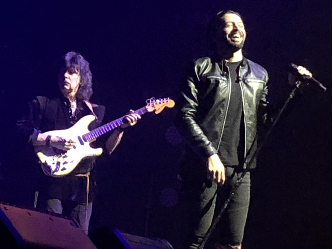 お約束のオープニング「威風堂々」は今年は別アレンジのものに、そして「Over the Rainbow」からリッチーがステージ上に登場しての「Spotlight Kid」は何度観てもテンションが上がる。リッチーの立ち位置はセンターがデフォルト、シンガーのロニー・ロメロが上手のパターンだ。「I Surrender」「Mistreated」「Since You’ve Been Gone」あたりまでは通常通りの展開だったが、「Man on the Silver Mountain」ではベーシストのボブ・ヌーボーが観客との掛け合いとMCを始めた。セットリストは毎年ほぼ同じなのだけれど、毎回こうした変化を確かめることができる。今年はメンバーの存在感が随分とバンドらしくなっており、ドラムスのデヴィッド・キースも以前より派手なパフォーマンスをみせることで、地味だと感じていたリズム隊の存在感が際立ってきたようだ。