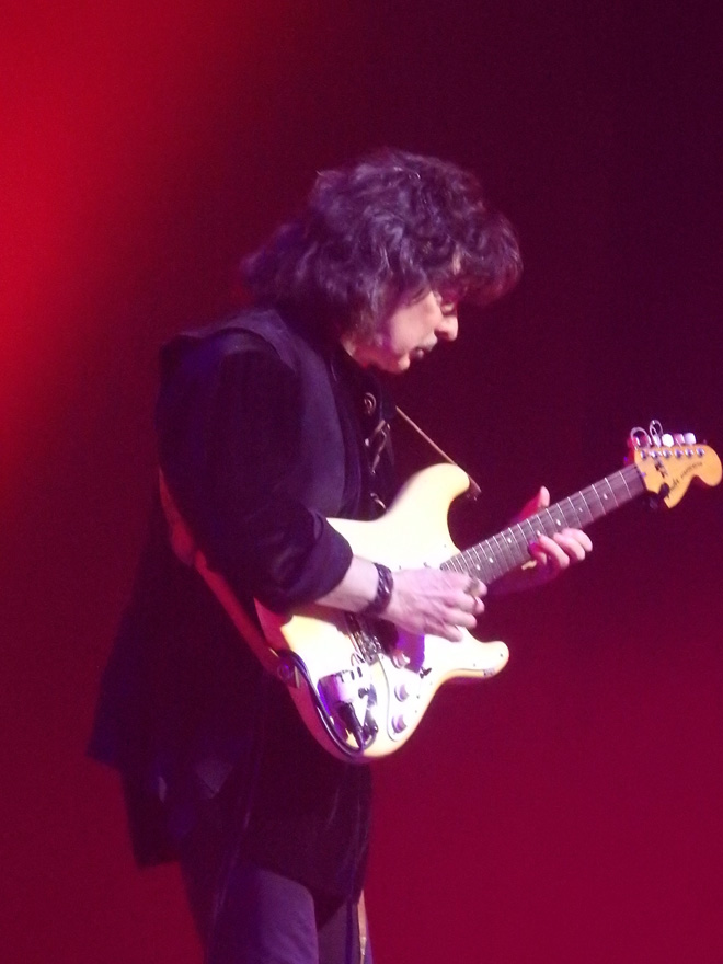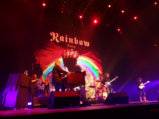 「Sixteenth Century Greensleeves」も別アレンジで披露され、以前はセットリストで決められた場所でのみMCを挟んでいたロニー・ロメロも「楽しんでるかい?」「みんなどこから来たの?」と自由に観客とコミュニケーションを取っていた。ステージも順調に進行しながら、この日4月13日はリッチーの誕生日前夜の為「Defficult to Cure」の途中にバースディを祝うコーナーも設けられていた。メンバーからのプレゼントがステージで渡されたものの、リッチーは開封もせず無愛想にステージ袖へ引っ込んでしまい、メンバーが慌てるというまさかのサプライズ(ハプニング)。ボブが必死に場を繋ぎながらプレゼントを自ら開封し観客に見せるという、シナリオ通りにいかないのもリッチーならではの出来事であろうか。イェンス・ヨハンソンのキーボードソロをたっぷりと挟んだ以降に演奏は「Defficult to Cure」へと戻っていった。