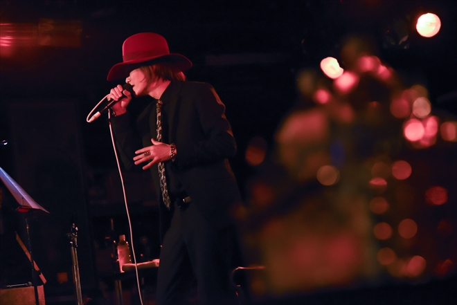 午後3時に幕を開けた第一部<「新宿ブルース」~名曲スナック「ガラ」~>では、ガラの選曲による哀愁に満ちた名曲で構成。1曲目の「路地裏哀歌」で場末の退廃感を表現したかと思えば、「高層ビルの上でラストダンス」で情熱を魅せる。曲と曲の合間に挿入されるガラと結生の他愛のない会話にも“名曲スナック”らしい人間臭さが滲み出ていて、笑いが絶えない。そんな和やかな雰囲気が場内を包んでいても、いざ次の曲が始まるとしっかりと引き締めてみせるところはさすがである。イルカの「なごり雪」とT-BOLANの「離したくはない」のカバーを披露したブロックなどは、第一部のハイライトの一つだろう。ガラに今後どんな名曲をカバーしてもらいたいか妄想するのも一興だ。終盤の「そして、遠い夢のまた夢」の豊かな音色や「SIGHT GLASS」で増幅された狂気にも、アレンジセンスの高さを感じた。どこまでも広がっていきそうな「エムオロギー」で晴れやかに締め括った<名曲スナック「ガラ」>は、ガラの歌心を存分に味わえるひと時となった。