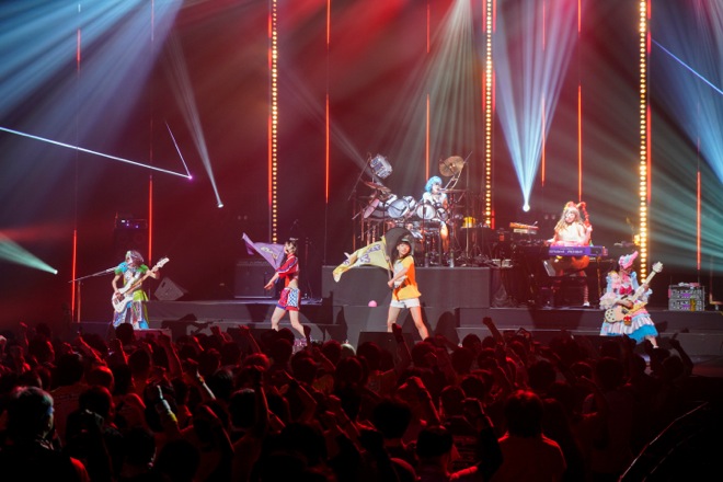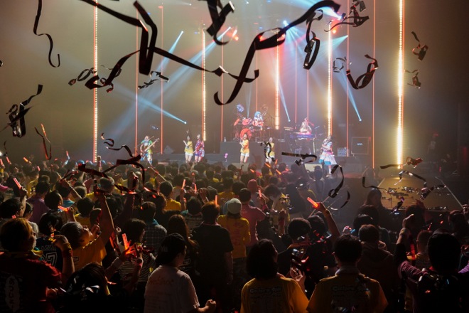後半は爽やかな味わいの「ハンティングサマー」や、オレオレオナが“自虐キレ系キャラ”全開で歌うハイテンションな「ズバリ発情期!」、TOMO-ZOのキュートなボーカルをフィーチュアしたアップテンポの「年齢不詳の魔女になりたい」、ダンスチューンの「シャキシャキして!!」などを相次いでプレイ。勢いに任せていきあげるパターンとは異なり、メンバーそれぞれの個性を押し出しながら多彩なアッパーさでテンションを上げていく流れが実にスムーズで美しい。笑顔を浮かべて演奏し、パフォームするメンバーの姿や気持ちを引き上げるサウンド、一体感に溢れたリアクションで盛り上がるオーディエンスなどが混然一体となって、TOKYO DOME CITY HALLの場内は楽園のような情景を描き出していた。