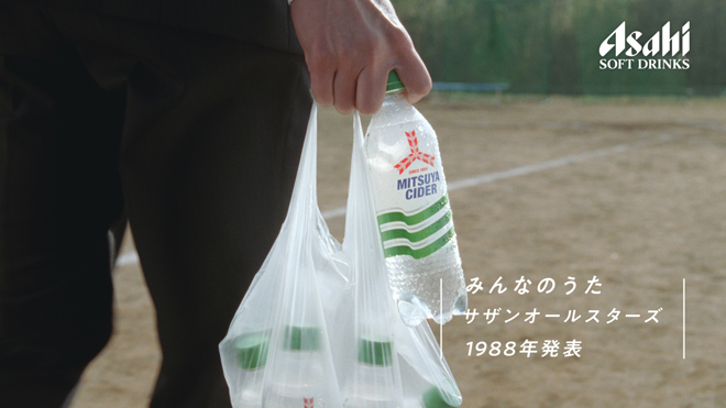 サザンオールスターズのデビュー年である1978年から10年ごとに刻んだ名曲4曲をそれぞれ使用したCM計4パターンを制作し、来たる6月25日のサザンオールスターズデビュー40周年記念日に向かって順次展開していく特別企画となっている。その第二弾CMとして、本日より「三ツ矢 and サザン 2018 『まぶしすぎる記憶編』みんなのうた(1988年)」のオンエアを開始。このような企画は、三ツ矢とサザンでしかできない、史上初となる三ツ矢サイダーの広告展開であり、世代を超えて愛され続けてきた“すがすがしい炭酸飲料”と“国民的アーティスト”として、老若男女様々な人の様々な感情に、長年に渡り寄り添い続けてきた両者だからこそなしえた前代未聞の特別企画CMです。第三弾以降の展開にも期待しよう。