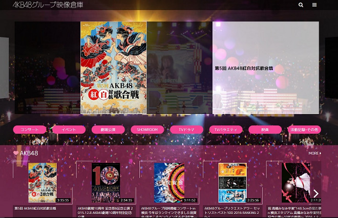 ▲「AKB48グループ映像倉庫」画面イメージ(PC)