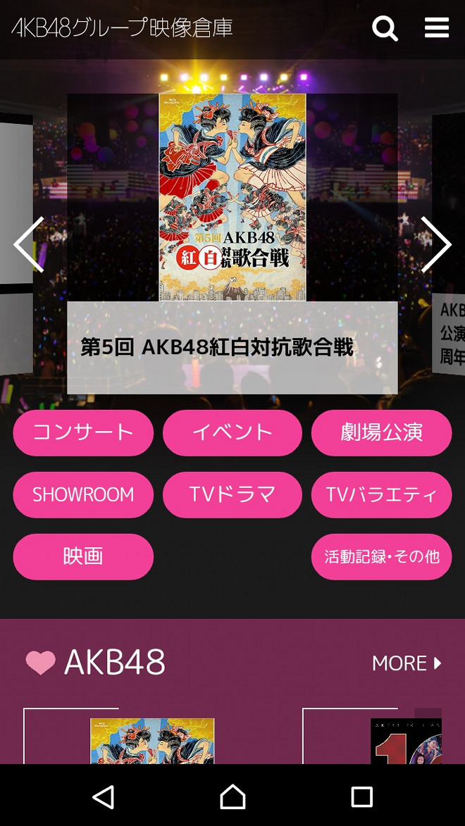 ▲「AKB48グループ映像倉庫」画面イメージ(モバイル)