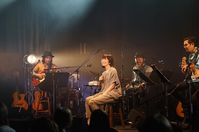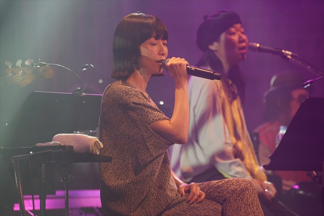 ライブ後半ではバンドメンバーでもあるギターのおおはた雄一と「ふたりの音楽」や下田 逸郎「セクシィ」を歌い上げ、さらに安室奈美恵の「Don’t Wanna Cry」をノリノリのダンスとともに披露する。「私、安室さんと同じ年で。芯の強さをリスペクトしています。あんなに歌えて踊れて、可愛くて、スタイルもよくて、後にも先にもこんな人いないんじゃないかな。今日は敬意を払って歌います!」と、同じ女性アーティストとして安室奈美恵への思いを熱く語る場面も。
