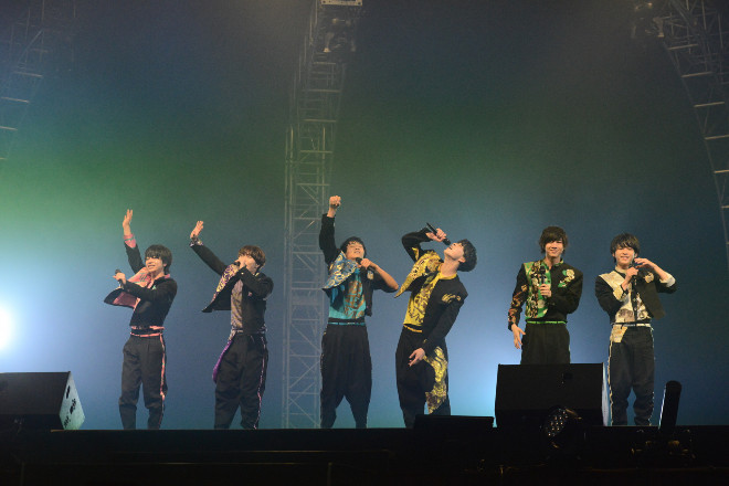 そんな熱気を引き継いだのは祭nine.。のっけから全員でのバック転で度肝を抜いたかと思えば、名古屋のストリートで一からのし上がってきた兄貴分、BOYS AND MENの遺伝子を受け継ぐグループらしく、がむしゃらに歌い、踊り、飛び跳ねた。MCでは「今日はリーダーが欠席ですみません」と語りながら、「でも、僕たち今日をものすごく楽しみにしてきました」と叫ぶと、会場のあちこちから温かな拍手が沸き起こった。