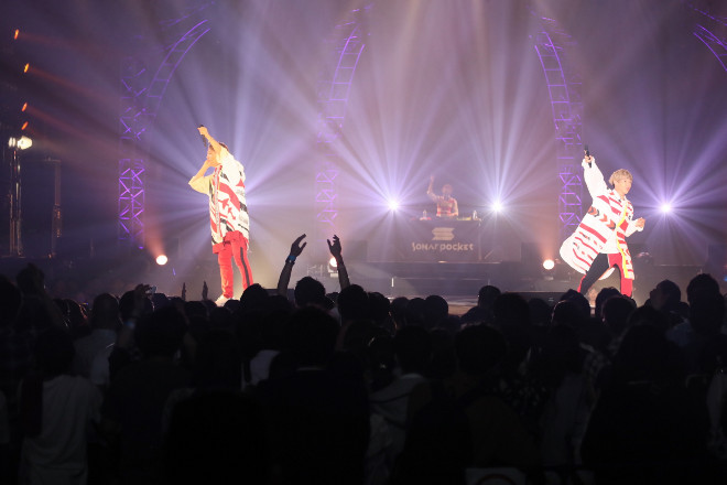 若さはじけるライブが続いた後には、9月にデビュー10周年を迎えるSonar Pocketが圧巻のステージを繰り広げた。ko-daiが深みと温かみのある歌声で切なげに「好きだよ。~100回の後悔~」を熱唱すれば、eyeronは「今日はがっつり(皆さんと)両想いになって帰りたいと思います」と宣言。アップテンポの「ファンファーレ!」ではmattyがギターを抱えてフロントまで出てきて、ライブを盛り上げた。この曲では、タオルを手にするよう会場へ呼びかけ、全員参加で笑顔を分かち合った。