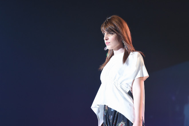 続いてランウェイに姿を見せたのは、女優やモデルなどマルチに活躍する17歳の女子高生アーティスト、吉田凛音。小柄で華奢な体躯からは想像できない伸びやかな歌声で観客を魅了し、4人のダンサーを従え軽やかに踊ったかと思えば、パワフルなラップを披露して観客を驚かせた。