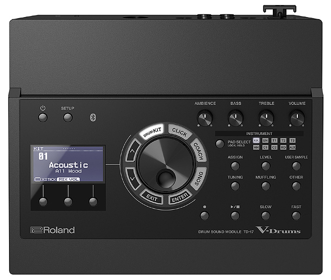 ▲Bluetooth機能を備えた新しいドラム・サウンド・モジュール「TD-17」(TD-17K-L-Sの音源部はBluetooth機能を持たない「TD-17L」)。
