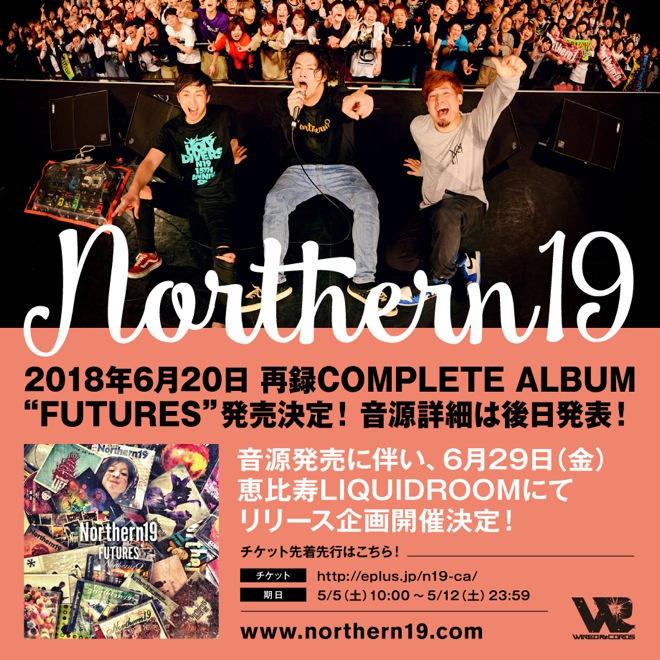 Northern19が6月20日、再録コンプリートアルバム『FUTURES』をリリースする。これにともなってミュージックビデオ撮影ライブを5月28日に新代田FEVERで行なうことが発表となった。