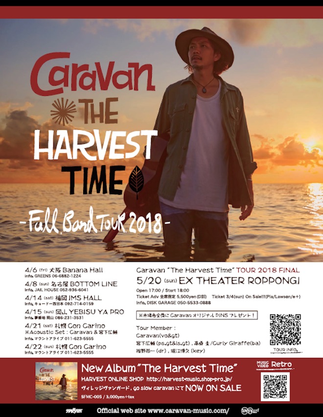 Caravanの全国ツアー< “The Harvest Time” TOUR 2018>のファイナル公演となるEX THEATER ROPPONGIが、今週日曜5月20日(日)に開催される。