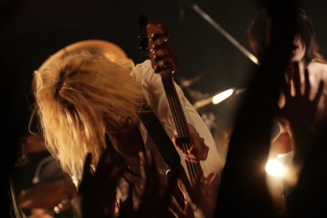 暗転と同時、秒針の刻む音と共にスクリーンに映し出されるツアースケジュール。ライブは楽しみだが、刻一刻と終わりが近づく現実に、熱狂とは異なる色合いの歓声が広がる。そのままスクリーンから流れる「In your dream」ミュージックビデオが、ファンの様々な思いを優しく包み込んでいった。そしてステージに現れたのは、いつもと同じように落ち着いた佇まいのYoshitsugu。一人ひとりの表情を確かめるように会場を見渡すのはLuna。両腕を力強く上げて煽るHirofumi。最後という寂しさも彼らには当然あるはずだが、それをはるかに上回る何十年分もの感謝を込めて、「Not saved yet」からライブをスタートさせた。