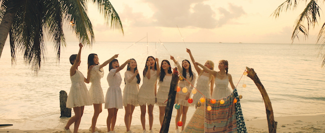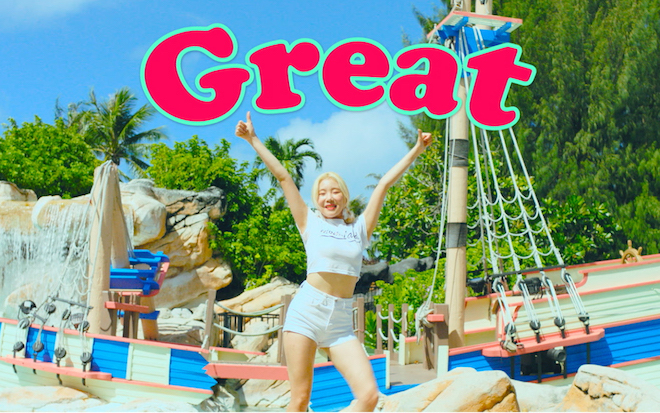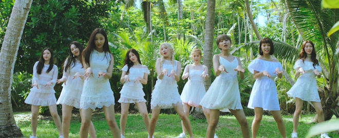 その日本語バージョンのミュージックビデオは、メンバーが地図を頼りに宝を探しに冒険に出るというストーリーのもと、MOMOLAND初のオールサイパンロケにて撮影。カラフルなTシャツにホットパンツという健康的なコーディネイトをはじめ、衣装も5パターンあるので、見どころが多い内容だ。