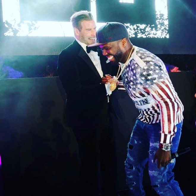 50セントは、その映像をTwitterに投稿。「俺とジョン・トラボルタがパーティー中。誓うよ、俺は彼のためだけにここまで来たんだ」とつぶやいた。