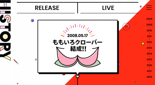 「#mymcz」に合わせて、ももクロ10年の歴史を振り返ることができる「HISTORY」ページも開設された。ここで、ももクロとの思い出を今一度振り返ってみては。