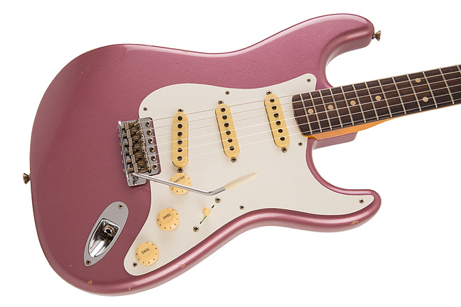 ▲CUSTOM BUILTの「CHAR 1959 STRATOCASTER BURGUNDY, JOURNEYMAN RELIC」 (MASTERBUILTは製作途中のため、写真・スペックともに今後公開)