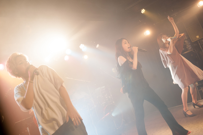 Roysの特徴は個性の違う3人のハーモニー。Arinの透明感のある中音域、Risaの凛とした高音域、Sayuriの力強く艶のある低音域という3つの声と、ArinとRisa、RisaとSayuri、SayuriとArinというそれぞれの掛け合わせ、そして3つの声が重なった時の音色と、7色の声色が虹のように弧を描き、Roysの歌を、想いをステージからフロアへと繋いでいく。中でも情感豊かに歌い上げた1stシングル曲「I’ll be there」は圧巻だった。この曲は今後、ここから広がるRoysの世界観の核となる楽曲へと成長していくに違いない。そんな期待を煽るパフォーマンスだったと思う。