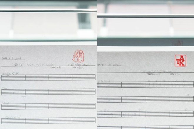 ▲松本孝弘直筆譜面 ※完成を意味する刻印が2016〜2017年以降、新しいものに