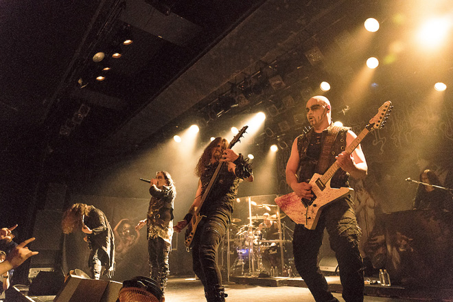 今回は2017年リリースの最新アルバム『クリプトリアナ~腐蝕への誘惑』に伴うツアーとのことだったが、蓋を開けてみれば新作から演奏されたのは2曲のみ。初期から最新作まで、各アルバムから1~2曲ずつという、彼らの長いキャリアを一望できる選曲であった。それにしてもダニは一体どんな喉をしているのだろう。一切セーブしている気配のない、あんな叫び声を出しまくっていたら、ライヴ後半にまったく声が出なくなってしまっても何ら不思議はない。ところが彼はせいぜいMCで多少声がかすれる程度。しかもツアー中、連日あの声で叫び続けているのである。とても人間ワザとは思えない、まさに神業、悪魔業である。