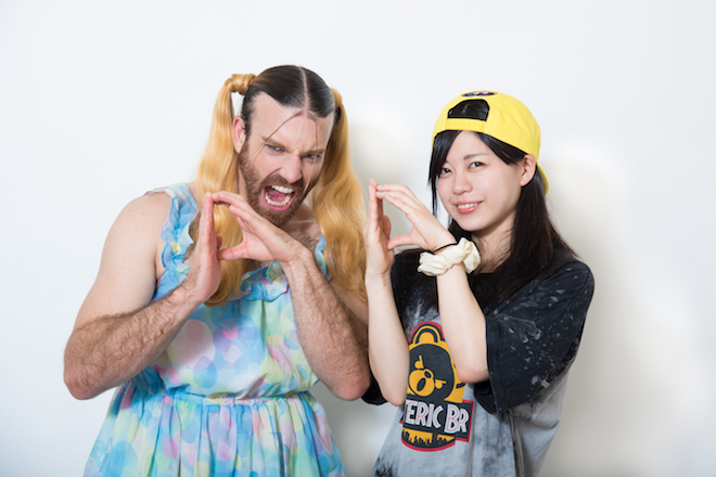 キュートな笑顔で超絶なドラミングを繰り広げるドラマー、むらたたむ。ある時はデスボイスを操るシンガー、ある時は激しいファイトも辞さないプロレスラー、さらには5カ国語を操り、さまざまな分野で活躍する女装パフォーマー、レディビアード。2018年2月に行われたむらたたむのライブで共演したふたりは意気投合。春にはコラボレートシングル「スーパーD&D~完全にリードしてアイマイミー~/D絶対!SAMURAIインザレイン」をリリースするに至った。さらに6月2日(土)には、東京WWW Xでリリースを記念したライブも決定。そんなふたりに、コラボレートが始まった経緯やライブの見どころなどを語ってもらった。