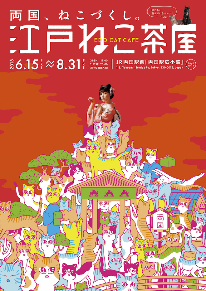 浮世絵世界で本物の猫と遊べるというユニークなコンセプトの期間限定カフェ<江戸ねこ茶屋>が、2018年6月15日から12月2日までJR両国駅西口イベント広場“両国駅広小路”(東京都墨田区)で開催中だ。