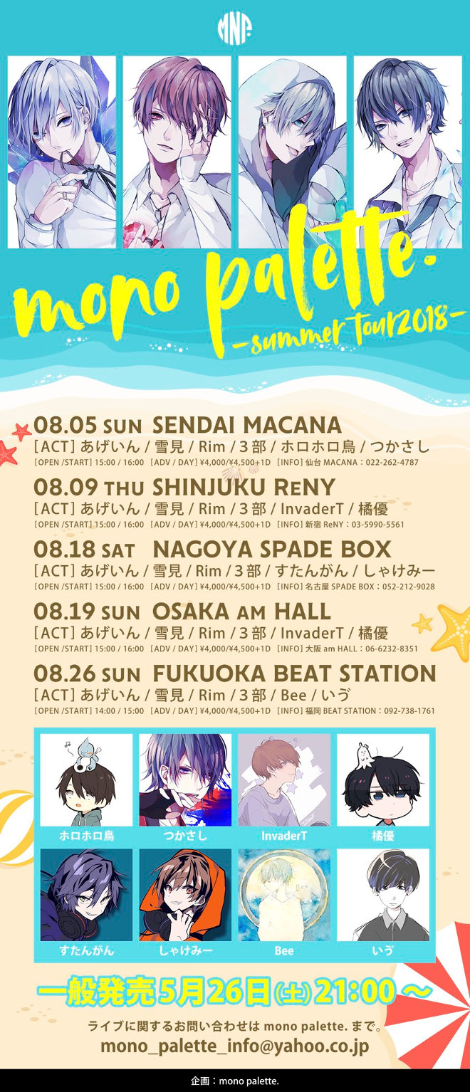 <mono palette.-summer tour2018->のチケット一般発売は、明日5月26日(土)21:00からスタートとなる。