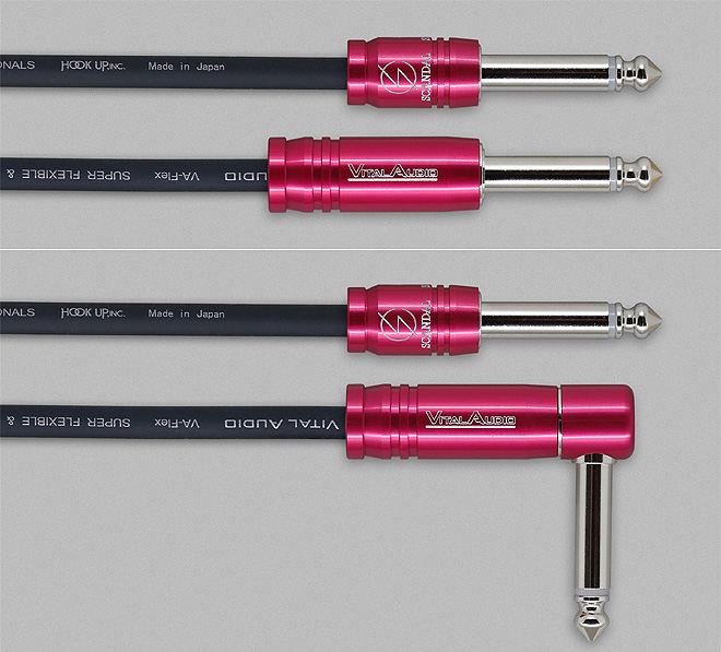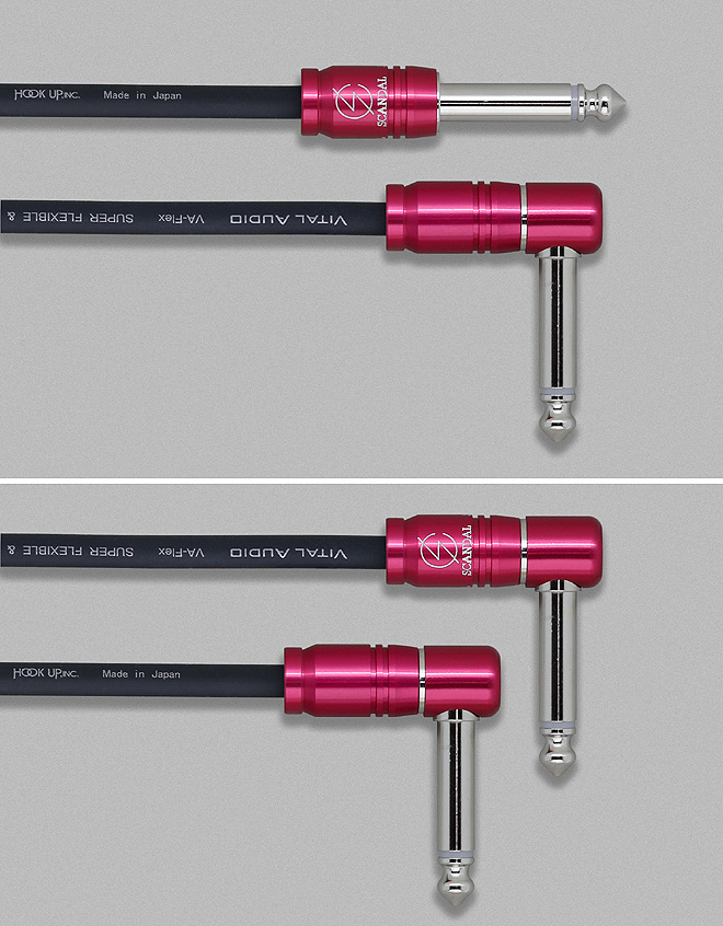 ▲ギターケーブル「VA-Flex/SD」シリーズ。上のS/Sはショートストレート×ロングストレートプラグ仕様、下のS/Lはショートストレート×ロングLプラグ仕様。ショートプラグにSCANDALロゴ、ロングプラグにVITAL AUDIOロゴを刻印。