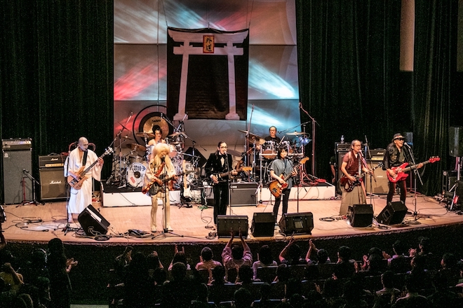 その後はアップテンポの「Get Down」や緩急を活かしたアレンジが光る「コウモリ男」、ファンキーな「ダンス・ダンス・ダンス」などが演奏された。明るいオーラを放ちながらステージを行き来してホットなアドリブを弾きまくる加納秀人と、快心のプレイを決めた後に笑顔を浮かべる松本慎二とそうる透。ライブを楽しんでいることが伝わってくるメンバー達の姿は本当に魅力的で、ベテランの彼らもステージに立つと少年に戻るんだなと思わずにいられなかった。
