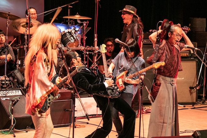 ライブ後半では、外道初期の名曲「ビュン・ビュン」と「香り」を畳み掛けるようにプレイ。当時の彼らが放っていたパンキッシュな魅力は今なお色褪せることがなく、時代を超えた輝きを放つ。と同時に、40年を超える年月を通してグルーヴィな音楽性にシフトした現在の外道のカッコ良さも改めて感じることができた。オーディエンスのリアクションも上々で、場内はメインコンサートの締め括りにふさわしい盛大な盛り上がりとなった。