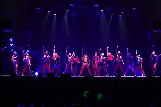 アンコール一曲目、EXILE THE SECONDの「HEAD BANGIN’」が終わると会場が暗転。ステージ周りの大型ビジョンに、3年ぶりのオリジナルアルバム『STAR OF WISH』の発売情報と、アルバムと連動した全国ツアー<EXILE LIVE TOUR 2018-2019 “STAR OF WISH”>の日程が映し出される。そして大型ビジョンがせり上がり、15人の新生EXILEが登場。大ヒット曲「Rising Sun」で2年半ぶりのEXILEのパフォーマンスが幕を開けた。