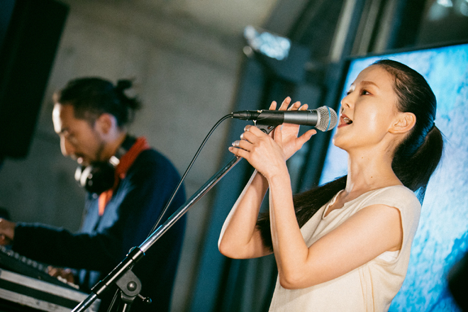 最後に披露されたのは、サウンドトラック『ZAN』のオープニグを飾る「Tsuki Nu Kaisha」。こちらも音数は決して多くないものの、石垣の“声”とHAIOKAのシンセ音が身体を包み込むような暖かく優しい1曲だ。この度、カワサキが提案する“五感を楽しむ”空間で行われた特別なパフォーマンス。終演後、HAIOKAもここの音響をいたく気に入った様子で「演者としても音の響きが気持ちよかったですね。今度は違う編成でライブを披露してみたい。」と語った。