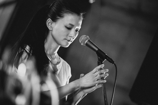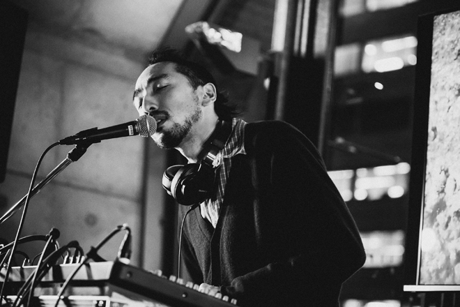 「Zekka」ではリアルタイムでのエフェクトを多用したボーカルを披露したHAIOKA。美しいピアノと図太いシンセの対比、その間を繋げるようなマシンライクなボーカル音という、絶妙なバランス感を楽しめる作品で、こちらは2015年のアルバム『From Ash Hill』収録。5曲目となる「Love is left」も同アルバム収録で、こちらも“声”を中心とした楽曲。こちらはほぼノンビートで、荘厳なシンセ音が耳に残る1曲。赤煉瓦造りのホール内で聴くこの音は、特別な広がり感を見せていたようにも感じた。