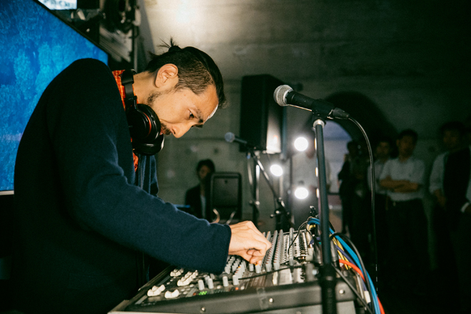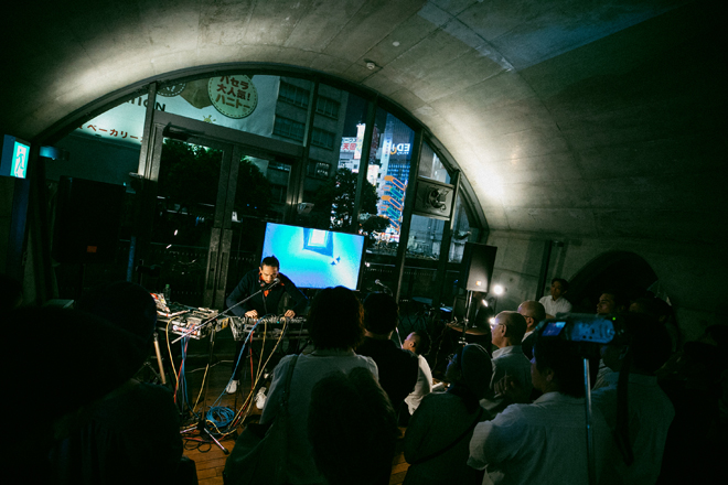 「カワサキショールーム」は複数の店舗が連なる共有スペースでもあり、HAIOKAの得意とするアンビエントサウンドにはもってこいのスペース。この日も平日の夜にもかからわず、『ZAN』サウンドトラックからの生パフォーマンスを期待したファンたちが多数集った。