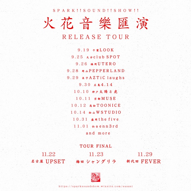 このミュージックビデオ公開にともなって最新アーティスト写真が発表となったことに加え、9月19日の千葉LOOKを皮切りに全国ツアー<火花音楽匯演RELEASE TOUR>が開催されることも明らかとなっている。