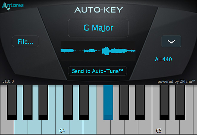 ▲Auto-Keyは音楽のキーとスケールを自動的に検出し、その情報をAuto-Tune Proの1つ以上のインスタンスに送信するプラグイン。トラックのキーとスケールをすでに知っている場合は、Auto-Tune Proの複数のインスタンスのキーとスケールのパラメータを1つの場所から同時に設定するのに便利。