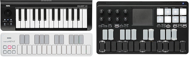 ▲「KORG Software Bundle」はコルグのコントローラー製品に付属。写真は「microKEY Air-25」「nanoKEY 2」(左)、「nanoKEY Studio」(右)。