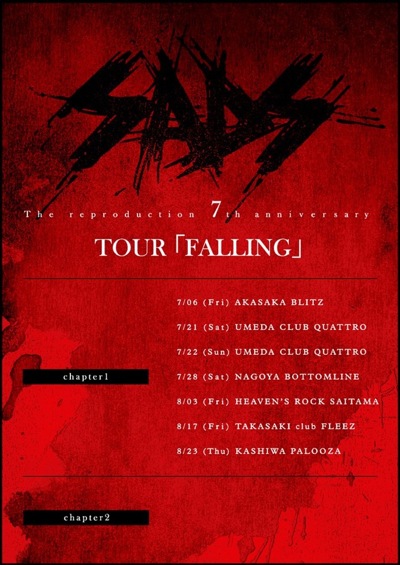 清春:わからないですね。どうなるかも。経験で言うと実際にやってみてからでないと先のことはわからないというのがあるので。今回は2010年の7月7日にデビューして、『7』っていうアルバムで再結成したsadsが7年を経え、更に通算7枚目のフルアルバムだったりとか。要するに、満7年を過ぎたところで一旦ちょっと考えようかな、という時期に来たんだと思う。僕が今年で50歳になるというのもあったりとか、来年が僕にとってはデビュー25周年だったりというのもあるんだけど。そこでこれからどう生きていくべきかって考えた時に、このハード過ぎる音を得意としているバンドの中での歌唱を続けていくことが年齢的に容易でなくなってはきたんだよね。まあ正直なところ、時折爆音の中にいて燃えきれてない自分が出てきてしまってる。多分、自分が思う近年の自分の良さみたいなものを抑えて、昔からの激しい部分を思い出しながらやってることを自覚してるからだとも思う。今も突進することも嫌いじゃないし得意なことではあるんだけどね。自分の肉体面とか、メンバーの人生にどこまで自分が関われるのかとか、または付き合って貰うのかとか、そういうことをいろいろ考えてしまうような場面がライブで何度かありまして。もちろん最後に加わったYUTAROも含めてそれぞれみんな自立してるんですけど、やっぱりsadsというバンドに彼らを迎えて僕と関わってくれたことにより、各々がそれまでの音楽人生とは違うステージに立ったはずだと思うんですね。それこそK-A-Z君やGO君とは黒夢の復活から一緒なので、そろそろ丸10年を迎えようとしてるわけじゃないですか。そこで、ある種の過渡期に来てる部分はあると思う。もちろんまだまだお互いやりたいと思ってるのは間違いないんだけど、一旦、ここで立ち止まるべきかな、と。ソロで追求していきたい音楽があるなかで、一年に何回か夏にはsads、という形でやっていると、やっぱりなんか他の活動も含めてすべてが短く終わってしまうですよ。夏にsadsをやって、秋にソロを作って年明けに作品を出して……という周期で動いていると、どちらも中途半端なところで終わってしまう。そこでちょっと、この7年の後はペースを変えたいなというのがある。解散するとかそういうことではないんだけどね。毎年、夏が来るたびにやってたようなことを来年はやめてみようと。僕はそういった意味合いを<FALLING>というツアー・タイトルに込めたつもりだったんで、それを見てもらえればすべて伝わるだろうと思ってたんですよ。ところが意外とファンのみんなもただただツアーに期待してくれちゃっているのかなと(笑)。そこで、これは増田さんに話を聞いてもらったほうがいいだろう、と思ったわけなんです(笑)。