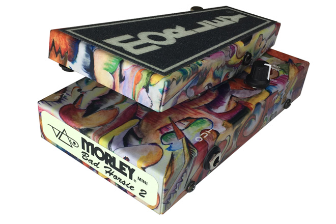 フルサイズのワウでベストセラーを誇る、スティーヴ・ヴァイのシグネチャーワウ、「Steve Vai Bad Horsie 2(VAI-2)」をミニバージョンにしたモデル。エレクトロオプティカル回路によるスイッチレス仕様のワウペダルです。ペダルを踏みこむとワウがオンになり、ペダルから足を離すと中に仕込まれたバネによりペダルが戻ってワウがオフになる。ワウがオンになるとLEDで確認可能。またフットスイッチによりコンツアーモードに切り替えることができ(別のLEDが点灯)、このときCOUNTOURノブによってワウ周波数とLEVELノブによってワウ音量を調節できる。トゥルートーンバイパスバッファー回路搭載。スティーヴ自身が描いたアートワークをまとったサイケデリックな外観が魅力。