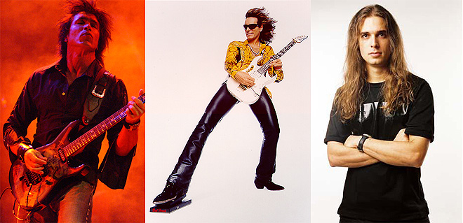 ▲左からジョージ・リンチ、スティーヴ・ヴァイ、キコ・ルーレイロ。