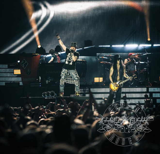 日曜日(6月3日)、ヨーロッパ(ドイツ・ベルリン)で今年初となる<Not In This Lifetime…>公演を開いたガンズ・アンド・ローゼズが、スラッシュとダフ・マッケイガンのバンド、ヴェルヴェット・リヴォルヴァーの「Slither」をプレイした。
