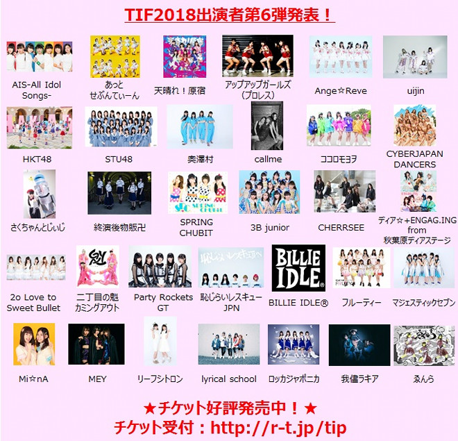 <TIF2018>第六弾出演者にHKT48、STU48、CYBERJAPAN DANCERSら32組