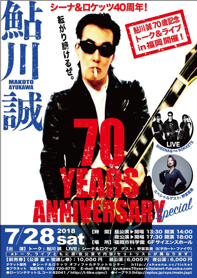 シーナ&ロケッツ40周年×鮎川誠70歳記念イベント開催決定
