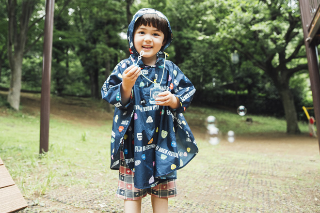 それから、今年はオフィシャルショップ岩盤とタッグを組んで、こどもフジロック・グッズを開発しました。フジロッカーにはお馴染みの愛されキャラ、ゴンちゃん柄のたまらなく可愛いレインウエア開発に秘められた想いは、6月8日公開の瓦版コラムでご覧いただけます。